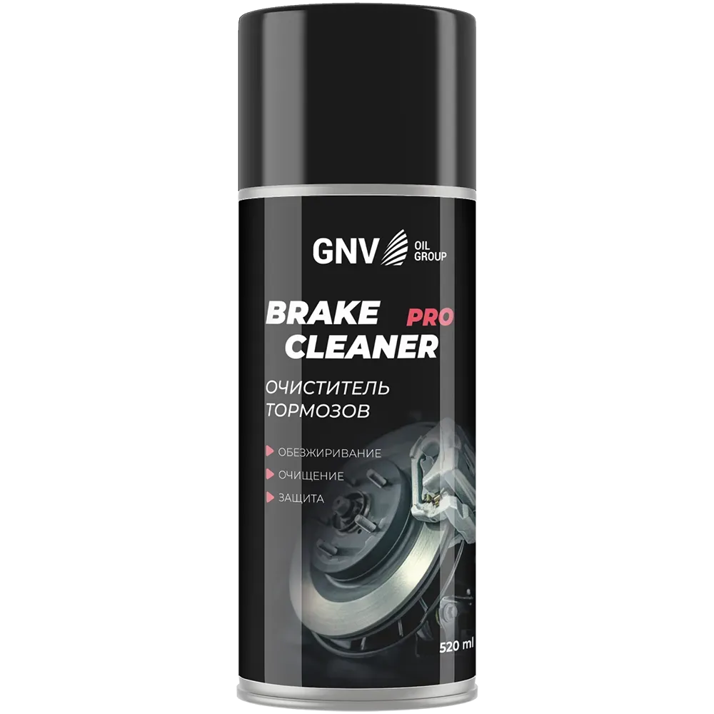 GNV Brake Cleaner Pro – очиститель тормозов. Средство для быстрой очистки тормозной системы (фрикционных накладок, тормозных барабанов, дисков, цилиндров) от масла, жировых отложений, тормозной жидкости и масляной дорожной пленки, а также для обезжиривания металлических поверхностей.