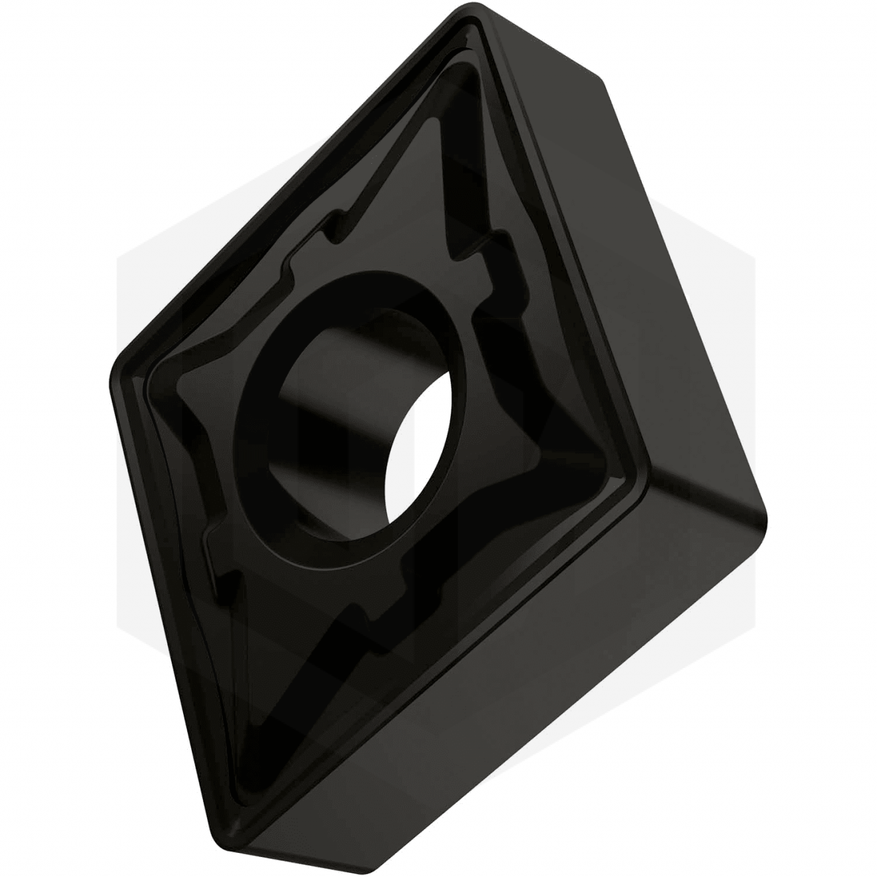CNMG 250924 - это один из стандартных типов сменных твердосплавных токарных пластин для обработки металла. Пластина имеет ромбическую форму с углом при вершине 80° и задний угол 0° (пластина негативная).