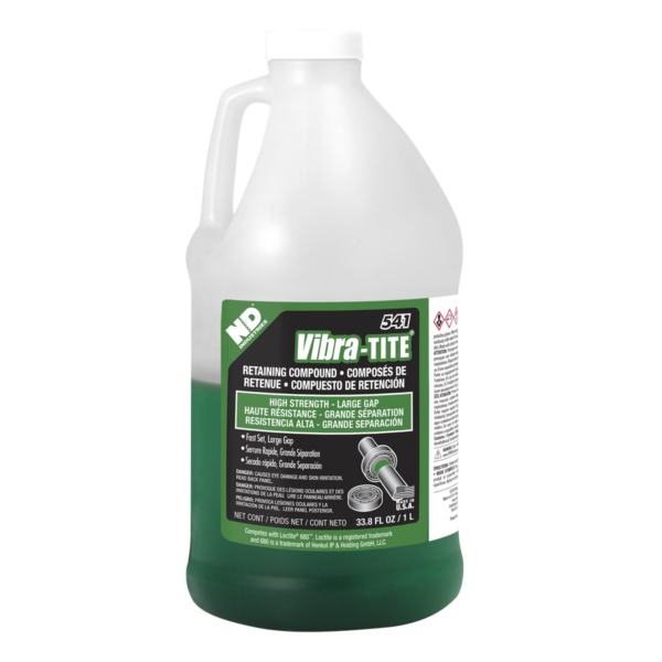 Однокомпонентный клей для цилиндрических соединений (вал-втулочный фиксатор). Vibra-tite 541 полимеризуется в небольшом зазоре между металлическими поверхностями без доступа воздуха (анаэробно). Отверждённый продукт представляет собой упрочненный термостабильный пластик, который полностью заполняет зазор между деталями, включая все микронеровности, тем самым крутящий момент передаёт 100% поверхности сопрягаемых деталей.