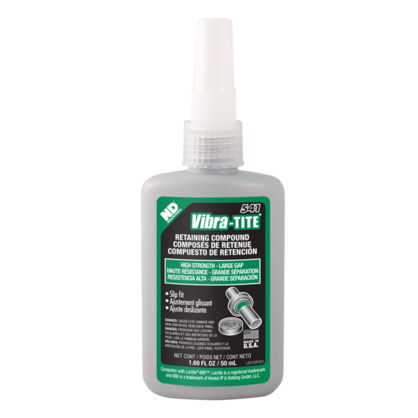 Однокомпонентный клей для цилиндрических соединений (вал-втулочный фиксатор). Vibra-tite 541 полимеризуется в небольшом зазоре между металлическими поверхностями без доступа воздуха (анаэробно). Отверждённый продукт представляет собой упрочненный термостабильный пластик, который полностью заполняет зазор между деталями, включая все микронеровности, тем самым крутящий момент передаёт 100% поверхности сопрягаемых деталей.