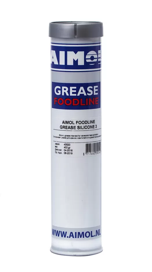 AIMOL Foodline Grease Silicone – смазка на силиконовой основе, обладающая высокими адгезионными (прилипающими) свойствами. Обладают превосходной устойчивостью к действию холодной и горячей воды, пару. Используются для смазки вентилей, кранов и ряда других операций. Полностью соответствует требованиям пищевых стандартов Kosher, Halal и NSF H1.