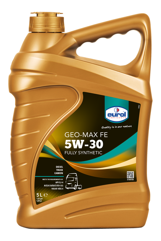 Eurol Geo-Max FE 5W-30 — полностью синтетическое UHPD моторное масло «с длительным сроком замены» для грузовых автомобилей, созданное по технологии «low sap». Это влечет за собой радикальное снижение концентраций серы, фосфора и сульфатной золы для защиты систем очистки выхлопных газов. Geo-Max обладает свойствами экономии топлива, а благодаря специальной технологии присадок в двигателях Euro IV, V и VI сокращаются вредные выбросы выхлопных газов. Его также можно применять в старых грузовиках с двигателями Euro III.