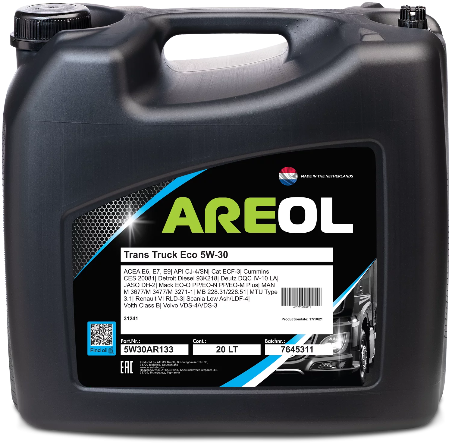 Моторное масло AREOL Trans Truck ECO 5W-30 – это низкозольная энергосберегающая смазка для дизельных агрегатов, которые используются в экстремальных условиях. В том числе жидкость подходит для современных дизелей, оборудованных системами доочистки выхлопов.