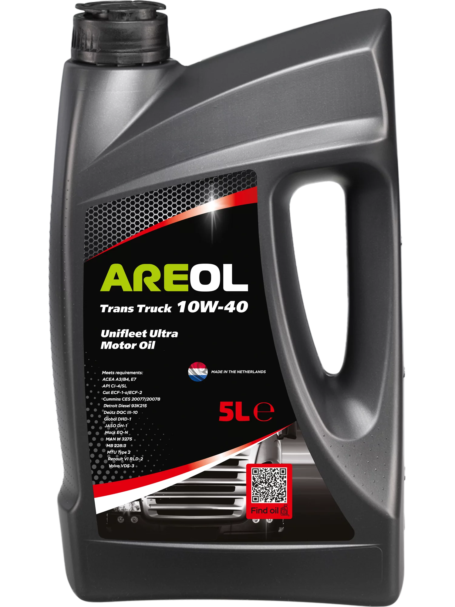 Для грузовиков европейских марок, работающих в сложных условиях, немецкая компания AREOL разработала моторное масло AREOL Trans Truck 10W-40. Оно может использоваться на машинах с бензиновыми агрегатами и дизельными установками, которые соответствуют нормам Euro 2/3/4. Также продукт применяют на легковых авто, которые не имеют специальных требований. Такая универсальность делает Trans Truck оптимальным решением для смешанных автопарков.