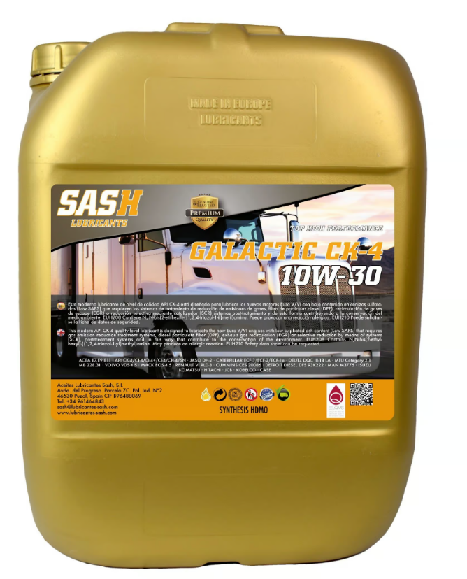 Этот современный смазочный материал уровня качества API CK-4 разработан для смазывания новых двигателей Euro V/VI с низким содержанием сульфатной золы (Low SAPS), требующие системы очистки газовых выбросов, сажевый фильтр (DPF), рециркуляцию выхлопных газов (EGR) или избирательное каталитическое восстановление (SCR), системы доочистки. Все это способствуют сохранению окружающей среды. Идеально подходит для грузовиков, легких коммерческих автомобилей и фургонов, оборудованных и не оборудованных фильтрами твердых частиц, а также для грузовиков, автобусов, сельскохозяйственных и строительных машин, которым требуется это масло и свои стандарты.