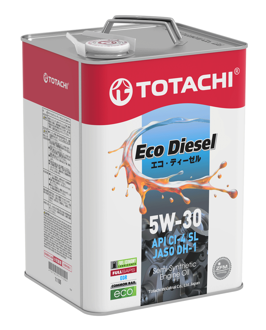 Eco Diesel 5W-30 соответствует или превосходит гарантийные требования OEM-производителей высокоскоростных четырехтактных дизельных двигателей стандарта эмиссии 2002 года, где требуется моторное масло категории API CI-4/SL или JASO DH-1, а также более ранних дизельных двигателей, которым необходимо масло с данными спецификациями. Подходит для использования в бензиновых двигателях, требующих моторное масло категории API SL. TOTACHI® гарантирует полное соответствие заявленным характеристикам, указанным на этикетках продукта.