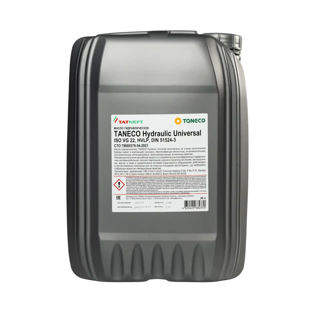 —Гидравлическое масло Татнефть Taneco Hydraulic Universal VG22, 20л