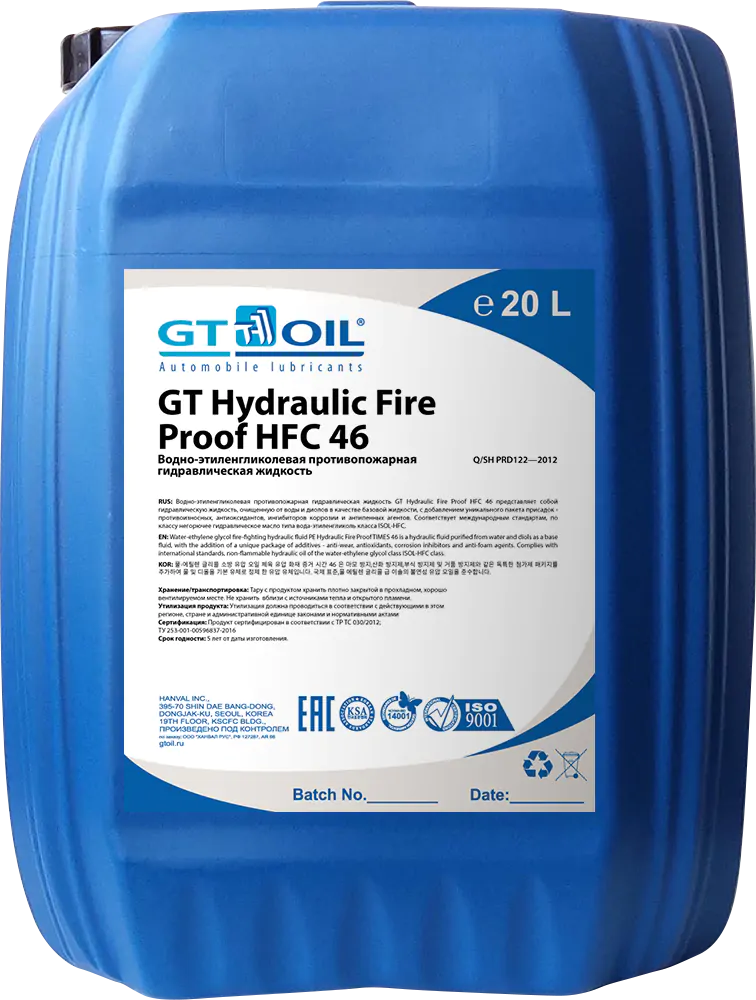 —Противопожарная гидравлическая жидкость GT Hydraulic Fire Proof HFС 46, 20л