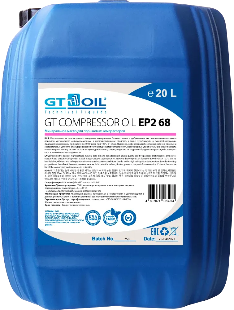 Минеральные компрессорные масла GT COMPRESSOR OIL EP2 изготовлены на основе высокоочищенных