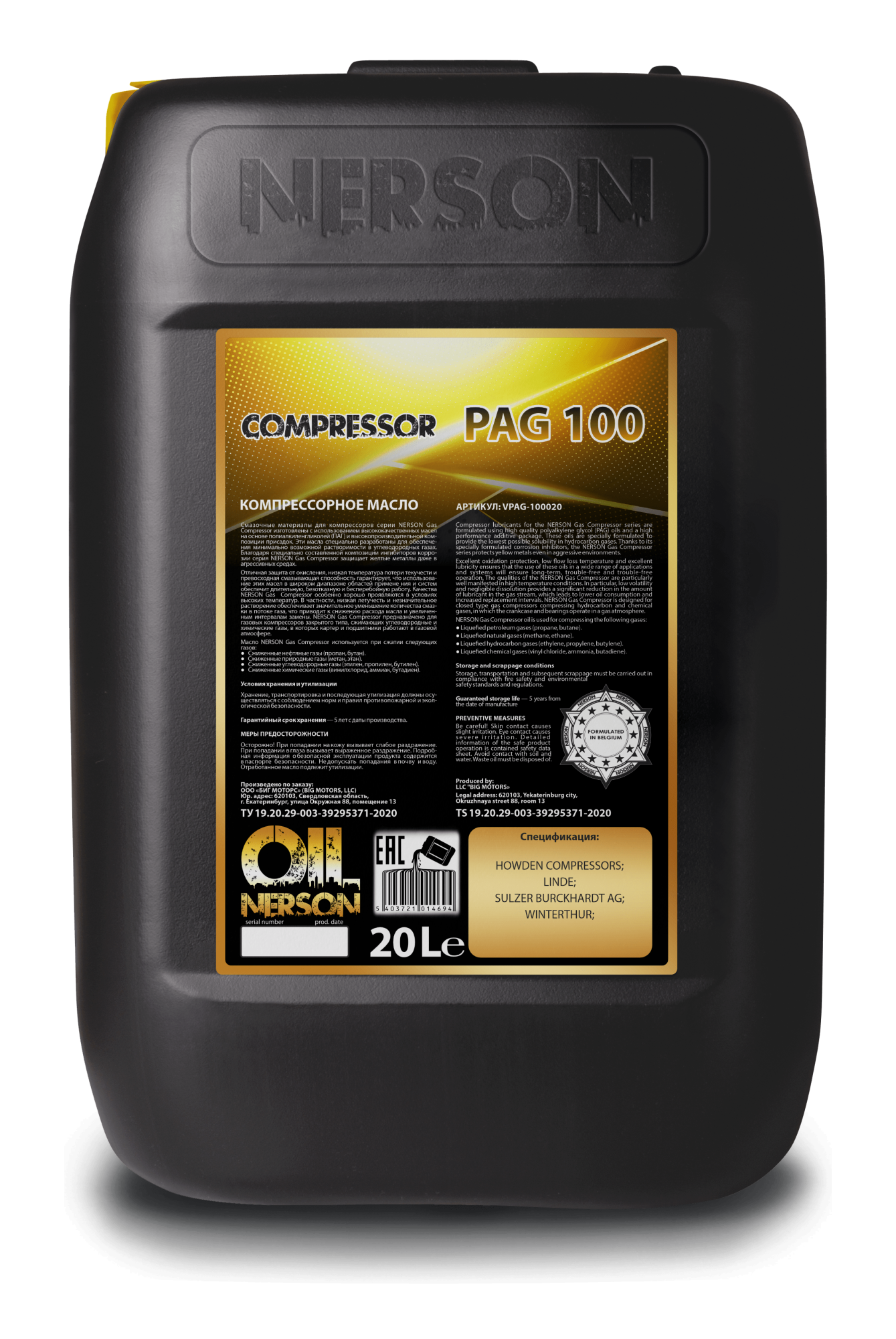 Смазочные материалы для компрессоров серии NERSON Gas Compressor изготовлены с использованием высококачественных масел на основе полиалкиленгликолей (ПАГ) и высокопроизводительной композиции присадок. Эти масла специально разработаны для обеспечения минимально возможной растворимости в углеводородных газах. Благодаря специально составленной композиции ингибиторов коррозии серия NERSON Gas Compressor защищает желтые металлы даже в агрессивных средах. Отличная защита от окисления, низкая температура потери текучести и превосходная смазывающая способность гарантирует, что использование этих масел в широком диапазоне областей применения и систем обеспечит длительную, безотказную и бесперебойную работу. Качества NERSON Gas Compressor особенно хорошо проявляются в условиях высоких температур. В частности, низкая летучесть и незначительное растворение обеспечивает значительное уменьшение количества смазки в потоке газа, что приводит к снижению расхода масла и увеличенным интервалам замены.
