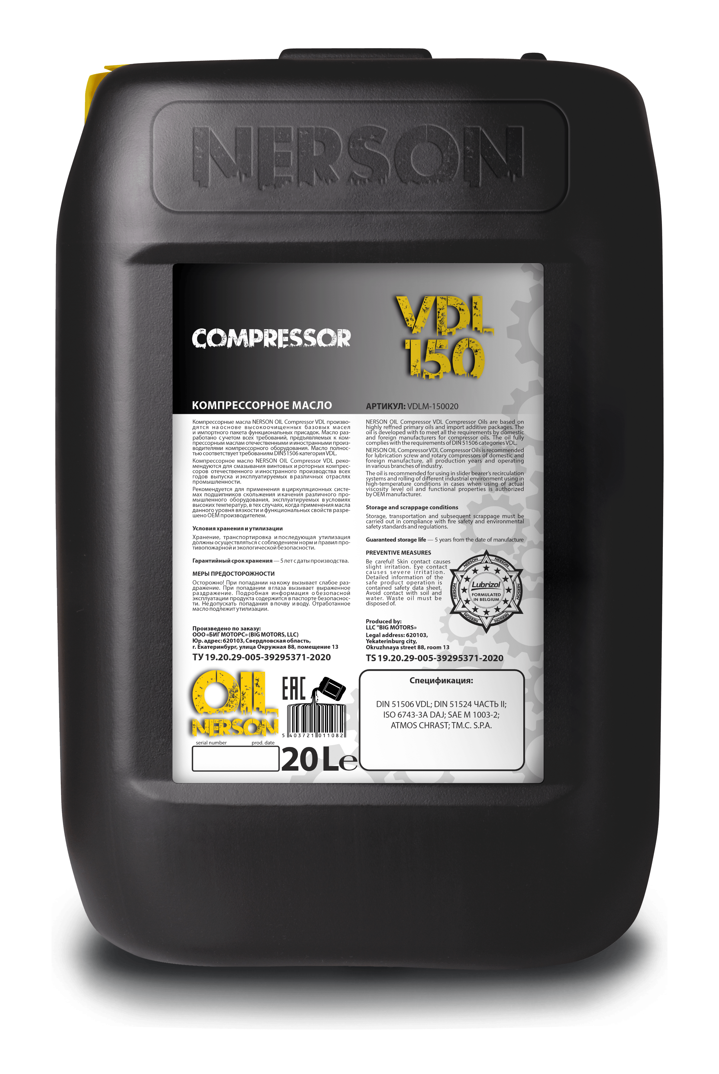 ● Масло NERSON OIL Compressor VDL 150 предназначено для смазывания маслозаполненных ротационных (винтовых, пластинчатых и др.) компрессоров при конечной температуре нагнетания до 220°C.