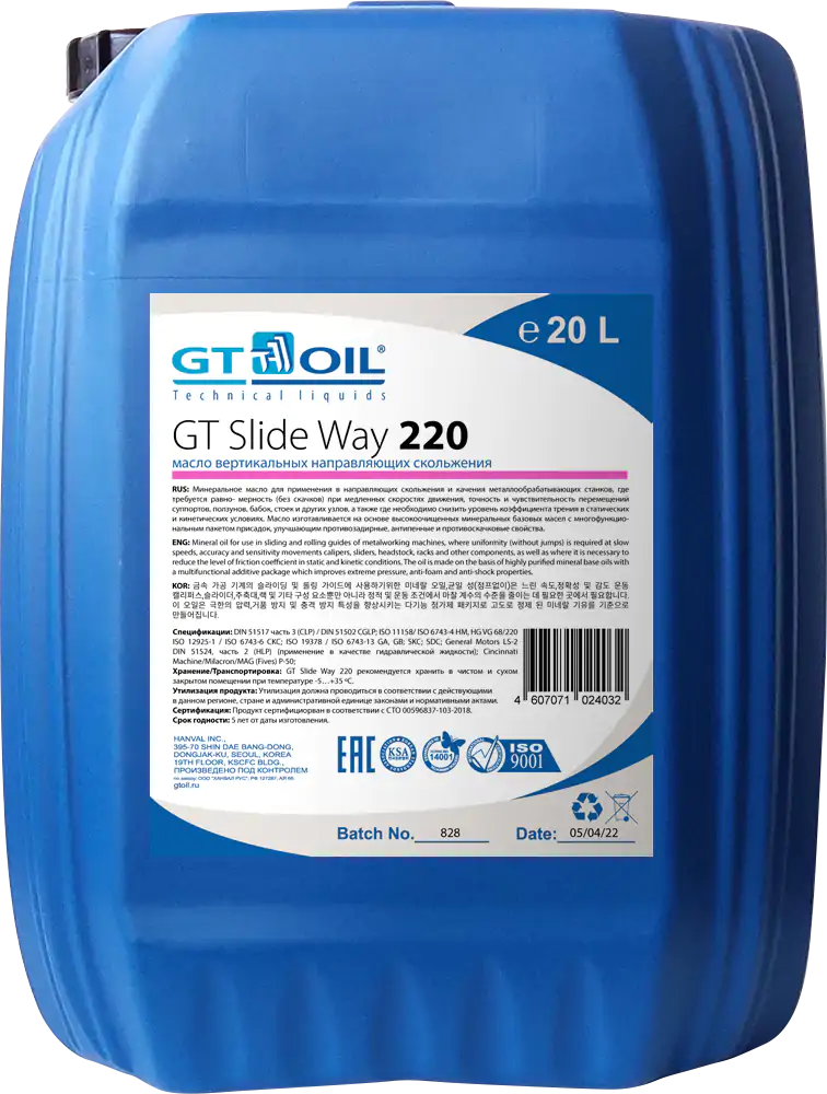 Масло направляющих скольжения GT SLIDE WAY 220 - серия минеральных масел для применения в направляющих скольжения и качения металлообрабатывающих станков, где требуется равномерность (без скачков) при медленных скоростях движения, точность и чувствительность установочных перемещений столов, суппортов, ползунов, бабок, стоек и других узлов, а также где необходимо снизить уровень коэффициента трения в статических и кинетических условиях.