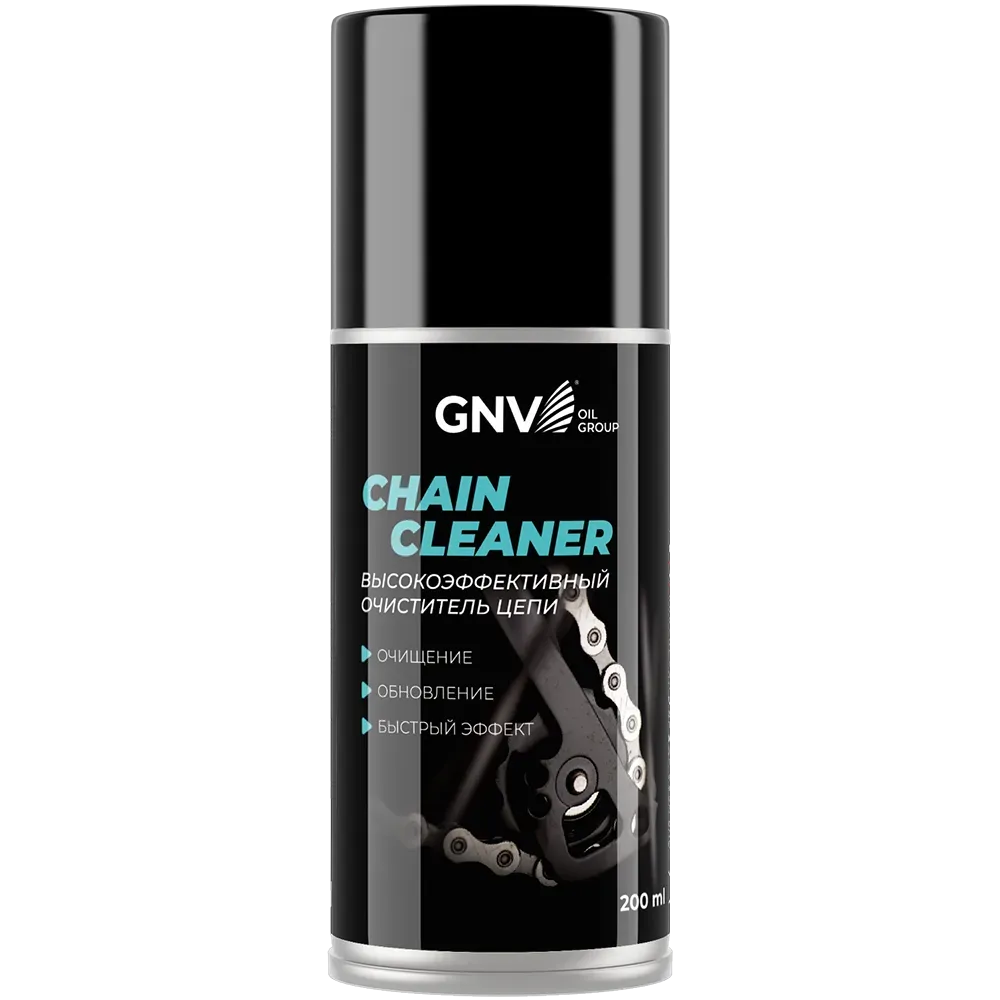 GNV Chain Cleaner – очиститель для приводных цепей мото- (вело-) техники (мотоциклов, снегоходов, скутеров, велосипедов и прочих видов транспорта), другой бытовой техники и инструментов, а также любых других цепей, в том числе цепных приводов промышленного оборудования, машин и механизмов. Быстро и легко удаляет с цепей органические загрязнения, старые смазки, консерванты, грязь, песок. Быстро высыхает, не оставляет следов. Применяется в обязательном порядке перед нанесением смазки.