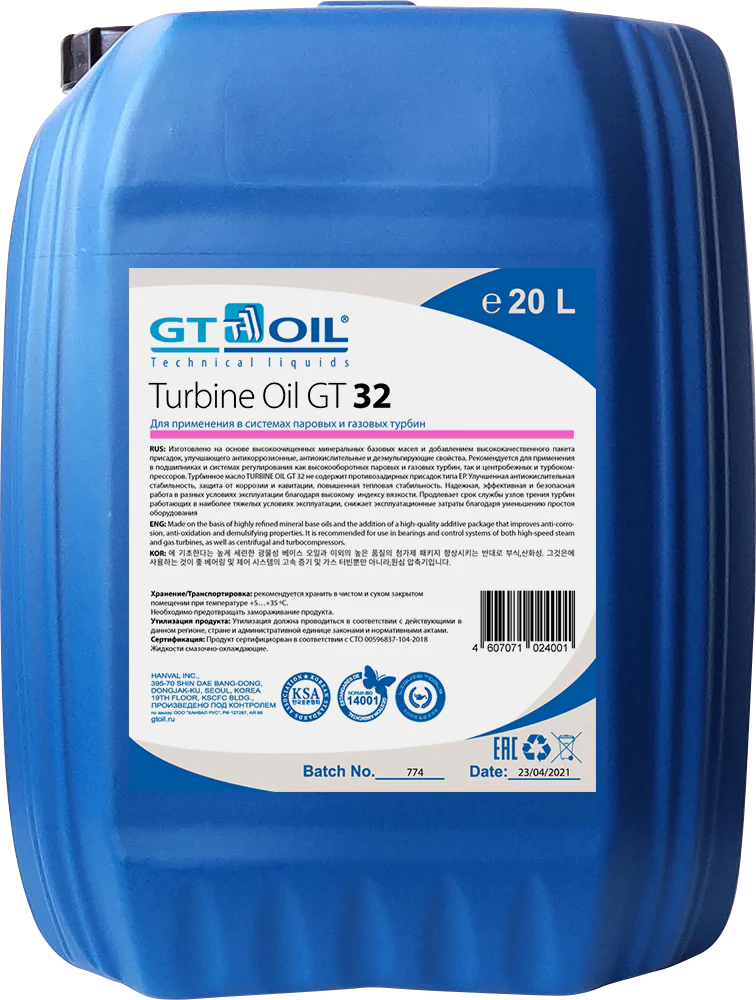 Турбинное масло TURBINE OIL GT 32 изготовлено на основе высокоочищенных минеральных