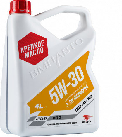 Синтетическое универсальное моторное масло ВМПАВТО MOTIVE C3 5W-30 на основе смеси высокоочищенного масла VHVI, алкилированных нафталинов и эфиров предназначено для большинства автомобилей, которым требуются масла с международными допусками API и ACEA. Масло относится к категории “Mid-SAPS” и предназначено для применения во всех современных двигателях легковых и легких грузовых автомобилей, требующих применения малозольных масел, в том числе оборудованных турбонаддувом, DPF-фильтром. Содержит высокоэффективный малозольный пакет присадок с низким содержанием серы, фосфора и сульфатной золы. Собственные разработки состава основы и пакета присадок гарантируют уверенный запуск ДВС при низких температурах, высокую стойкость масляной пленки, предотвращение образования отложений в двигателе.