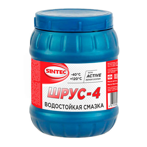 Смазка Sintec ШРУС-4 изготавливается путем загущения смеси высококачественных нефтяных масел литиевым мылом 12-гидроксистеариновой кислоты с добавлением пакетов присадок, обеспечивающих высокие антифрикционные, антикоррозионные и антиокислительные свойства. Содержит дисульфид молибдена МoS2 и наполнитель PTFE.
