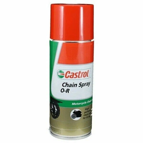 Castrol Chain Spray O-R — белый, полностью синтетический смазочный материал в виде спрея для цепей мотоциклов с О- и X-образными уплотнительными кольцами.