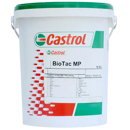 Castrol BioTac MP — экологически чистая универсальная смазка EP, основанная на сочетании технологии загустителя литиевого комплекса, биоразлагаемого базового масла и оптимизированной системы присадок для повышения защиты от коррозии, стабильности окисления и несущей способности.