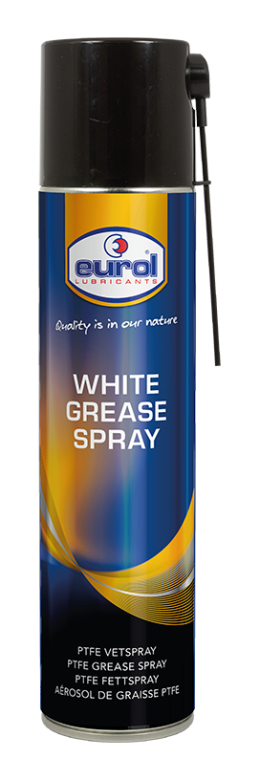 EUROL WHITE GREASE SPRAY with PTFE спрей смазка на литиевой основе с политетрафторэтиленом (тефлоном) . Универсальная смазка для эффективного и длительного смазывания цепей, петлей, пружин, подшипников, осей, рессор, резьбовых соединений и многих других движущихся частей. Обладает высокой стойкостью к коррозии и температуре.