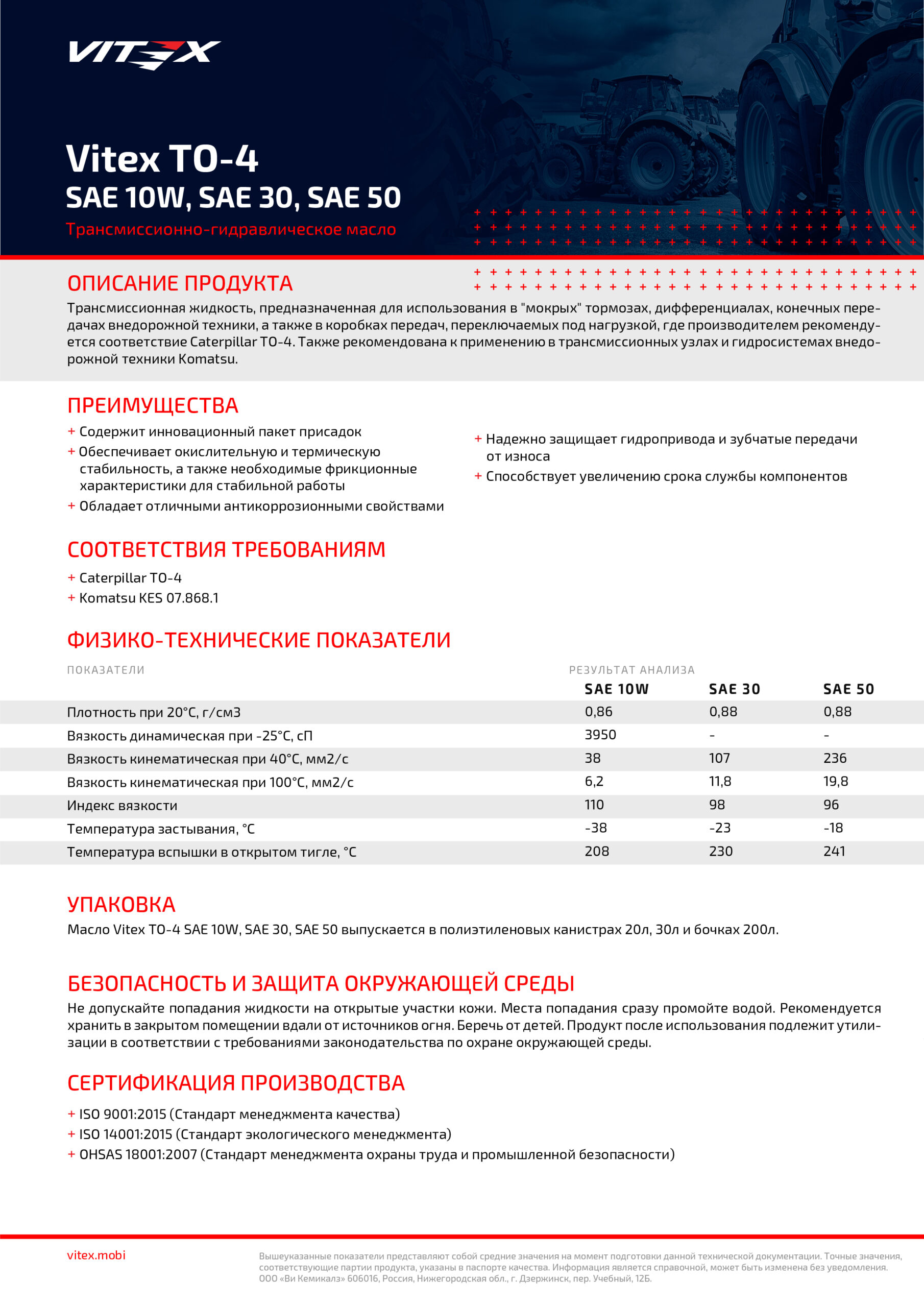 Трансмиссионная жидкость, предназначенная для использования в "мокрых" тормозах, дифференциалах, конечных передачах внедорожной техники, а также в коробках передач, переключаемых под нагрузкой, где производителем рекомендуется соответствие Caterpillar TO-4. Также рекомендована к применению в трансмиссионных узлах и гидросистемах внедорожной техники Komatsu.