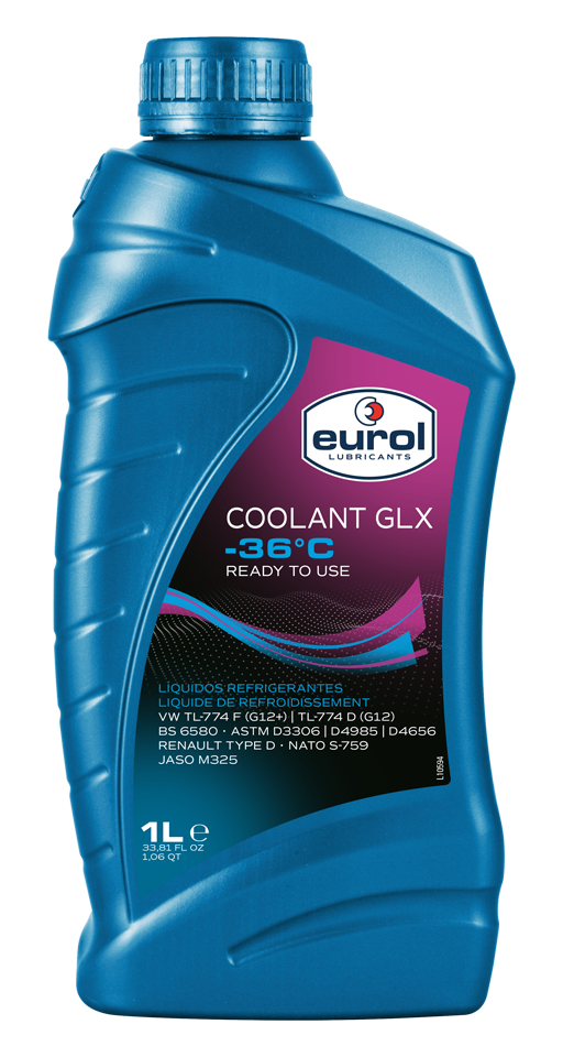 Eurol Coolant -36°C GLX GLX, разработанный для систем охлаждения нового поколения современных автомобильных двигателей на основе этиленгликоля (технология органических кислот), соответствует стандартам Volkswagen (TL 774 D и F) и Renault D. Он предотвращает образование накипи и обеспечивает отличную защиту от кавитации. Он защищает от коррозии все металлы, особенно сплавы алюминия и железа, даже при высоких температурах. GLX защищает от замерзания до -26 ° C соотв. -36 ° C и содержит экологически чистые добавки (карбоксильные кислоты).