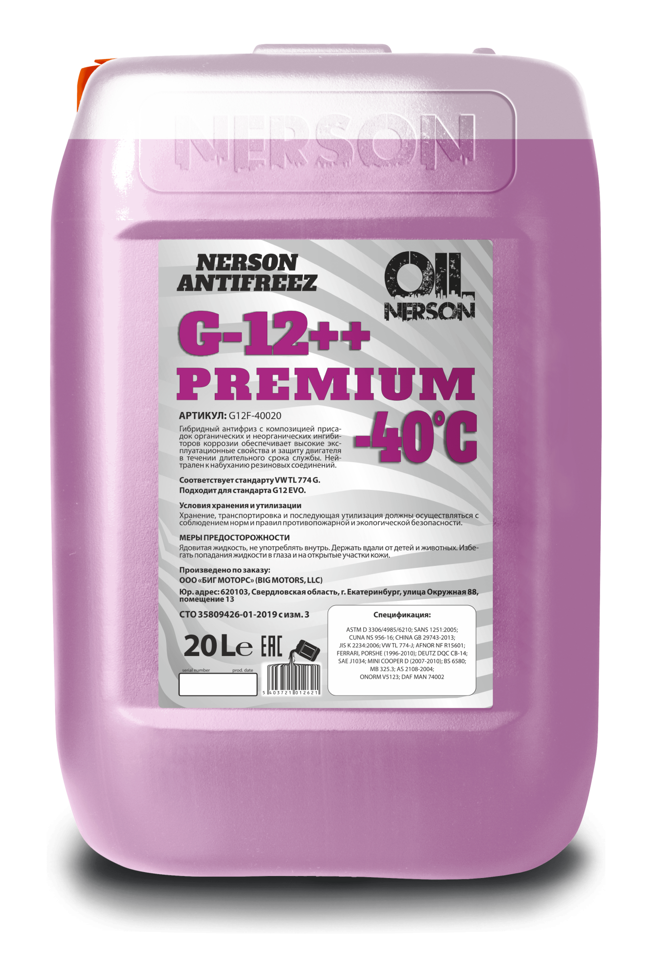 Охлаждающая жидкость ANTIFREEZ NERSON Premium G12++ используется в качестве теплопередающей жидкости в современных двигателях внутреннего сгорания. Жидкость изготовлена на основе высококачественного этиленгликоля с использованием присадочных композиций по гибридной технологии (HOAT - Hybrid Organic Acid Technology) и берет все самое лучшее от органической карбоксилатной и неорганической силикатной технологии. Не содержит аминов, нитритов, боратов, силикатов. Сбалансированный состав эффективно защищает детали силовой установки и системы охлаждения от кавитационного износа и коррозии.
